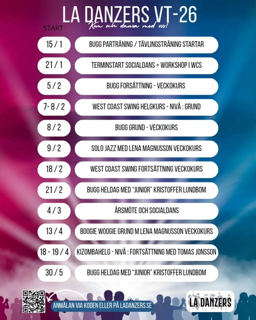 (När jag anmäler mig till kurs lämnar jag samtycke enl PUL (1908:204) till att personuppgifter läggs in i ett medlemsregister. Uppgifterna kommer endast att användas för information/erbjudande/redovisning från La Danzers)
